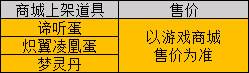 商城上架道具: